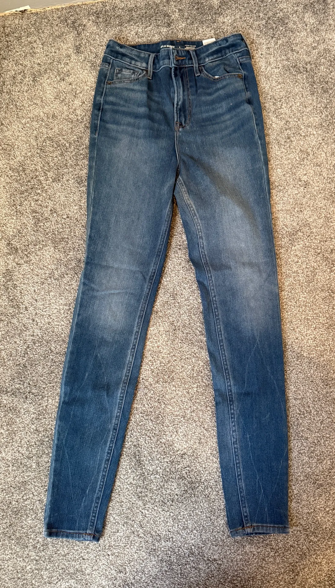 Very high rise darker wash blue jean skinny jeans built in sculpt good basic pair of jeans no ho... Show more