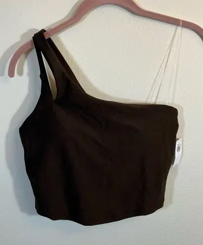 Old Navy Active women’s brown one shoulder tank top with built-in bra and removable padding. Has a m... Show more
