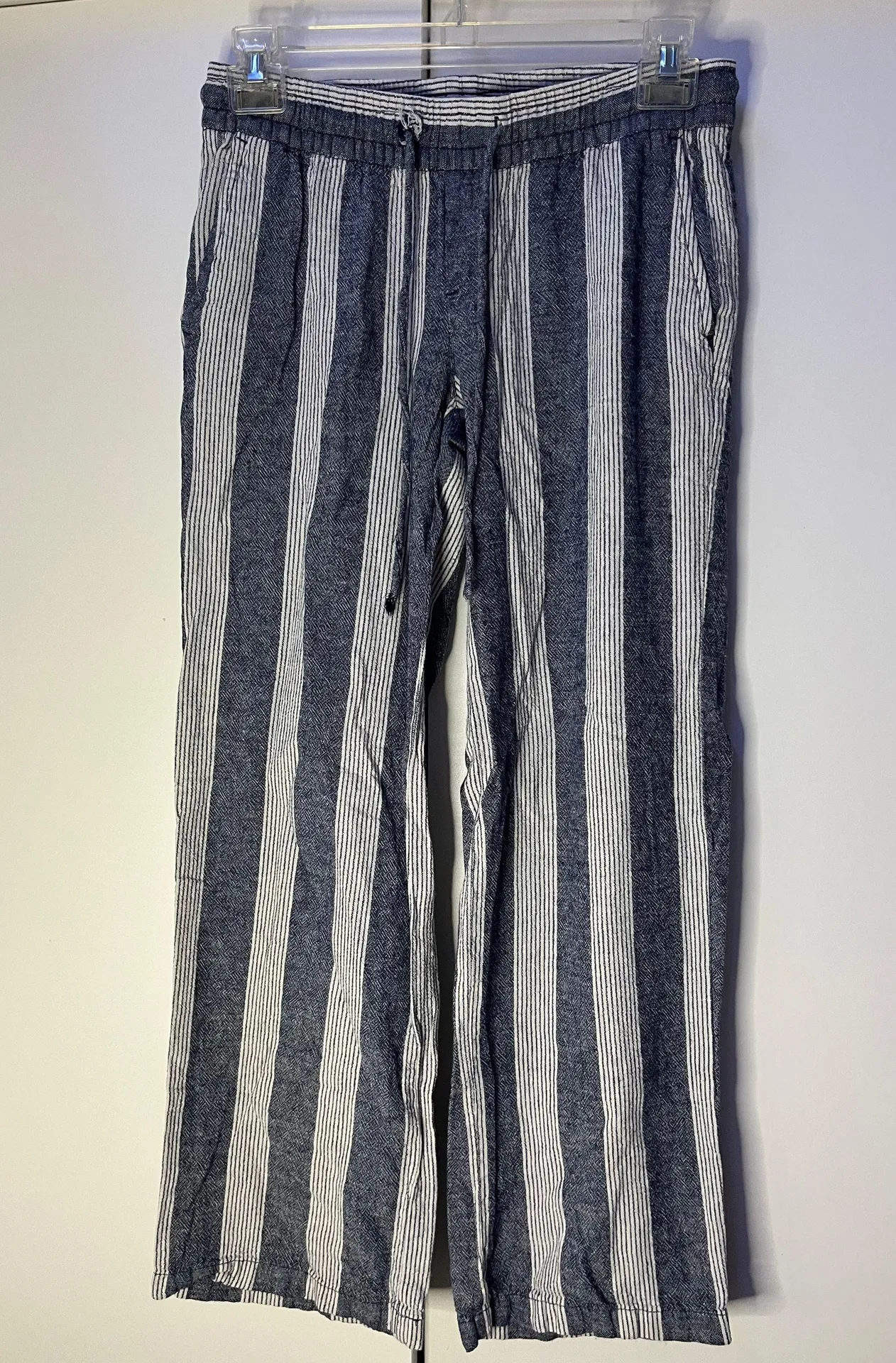 CONDITION: GOOD SIZE XS - BLUE AND WHITE PANTS - Loose fit and slightly cropped! - pockets in front... Show more