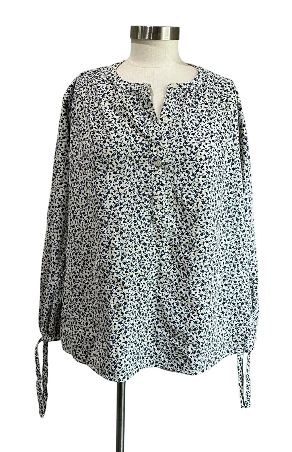 Floral Print Blouse Top Long Sleeve with string tie banded cuffs Blouson sleeves 4 Button Popover pl... Show more