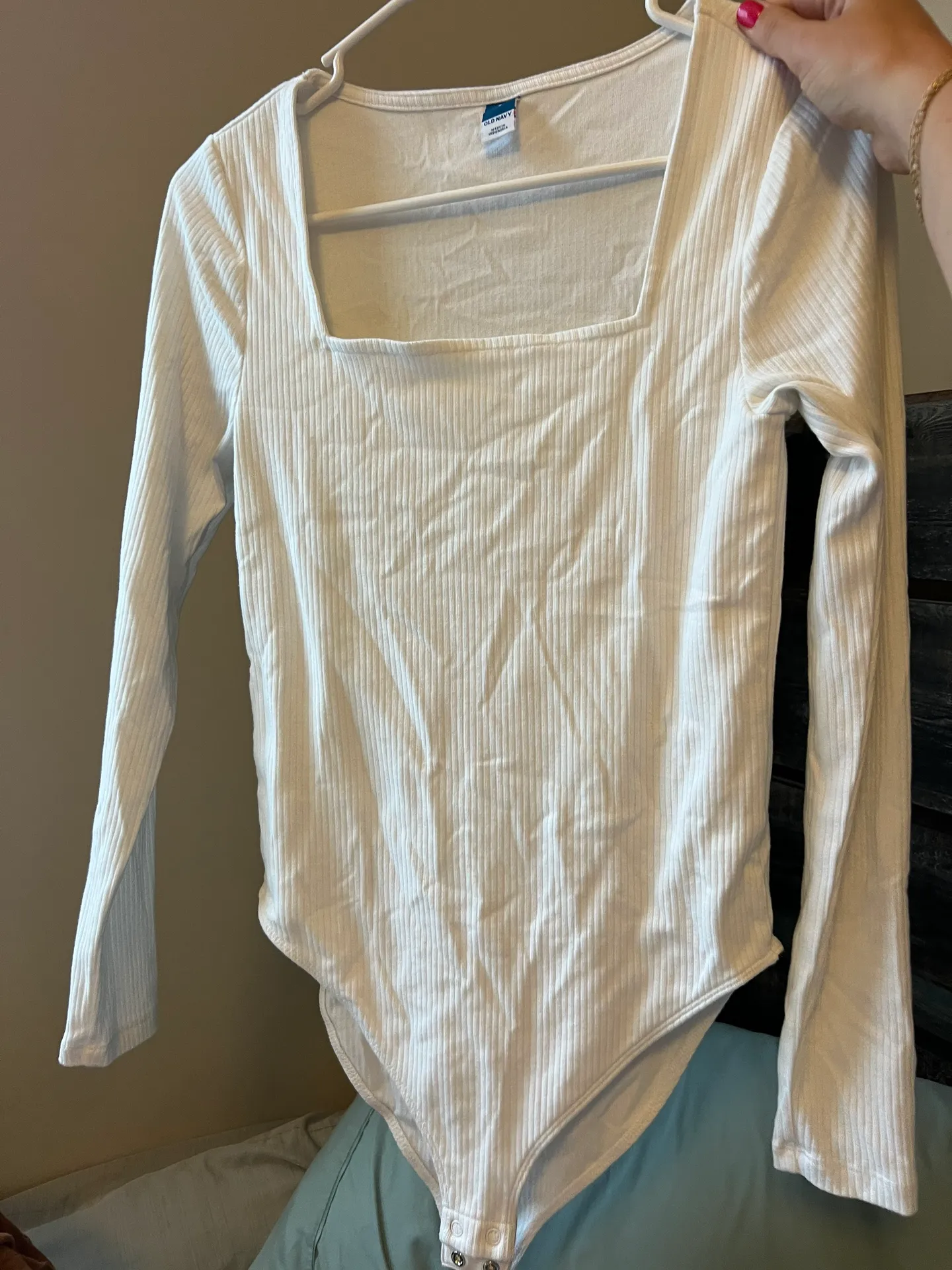 old navy squared neck long sleeve body suit excellent condition not see through material is thicke... Show more