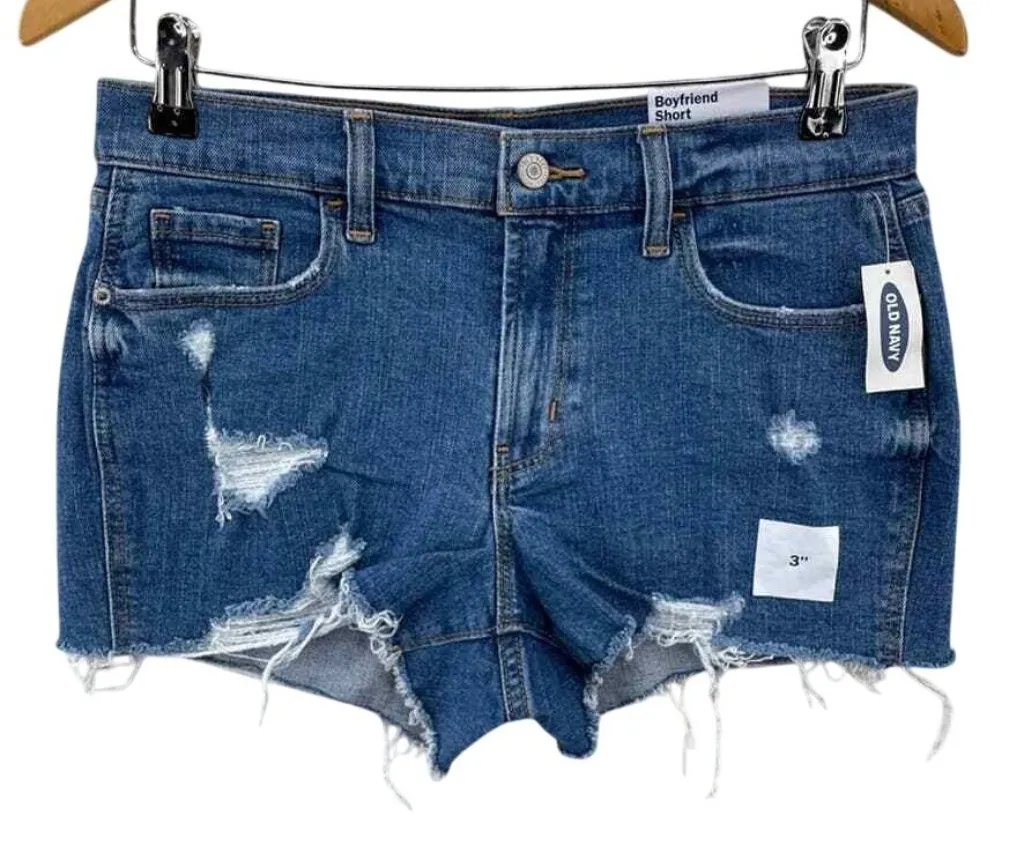Old Navy Boyfriend Short Jean Shorts Womens 4 Blue Distressed 3" Inseam NEW with tags Approxim... Show more