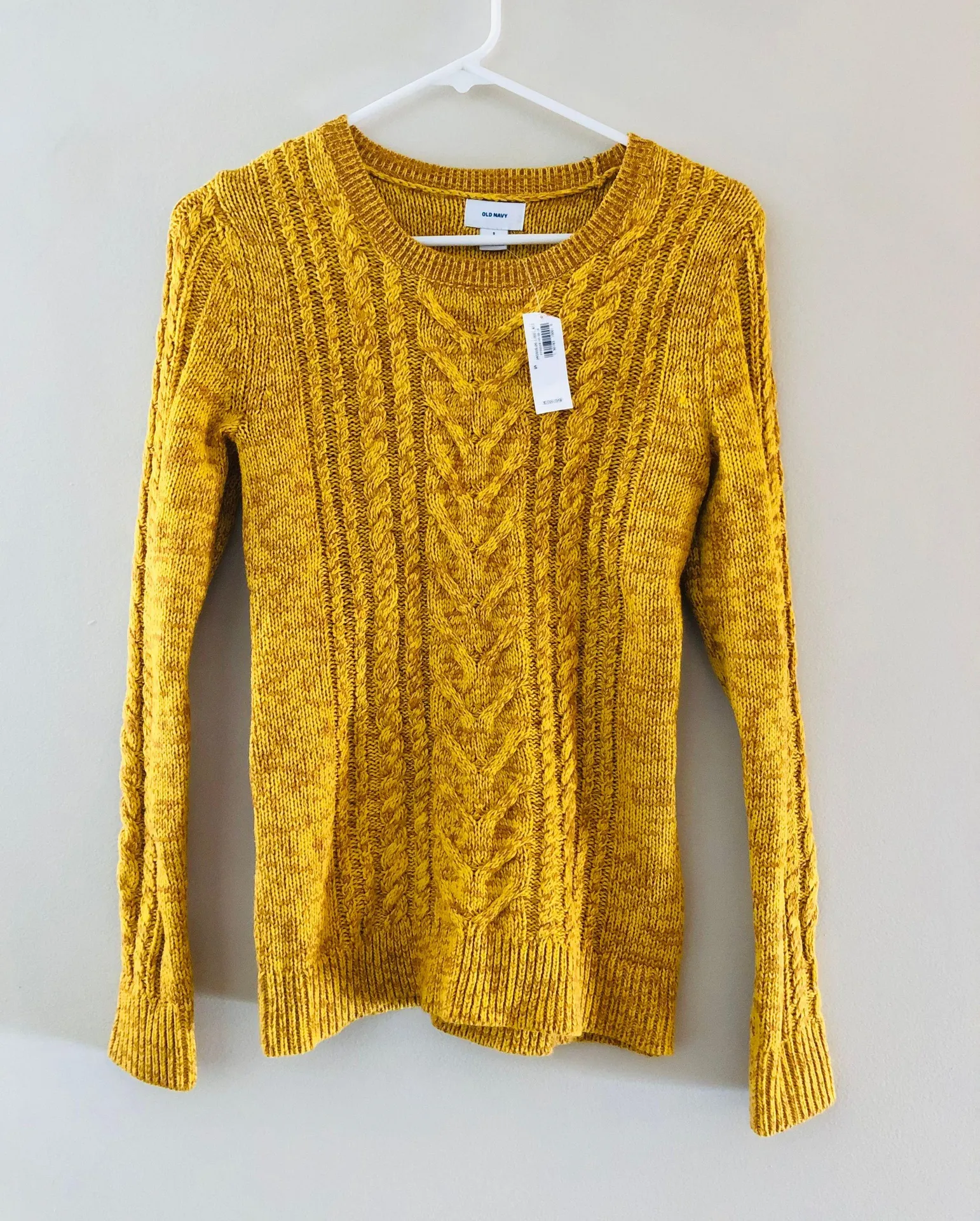 Old Navy cable knit sweater, new with tags, size small, mustard yellow, never worn, good condition,... Show more