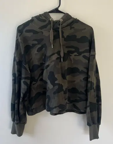 Cozy forest green pullover with hood. Features drawstring detail. Perfect for casual outings. Croppe... Show more