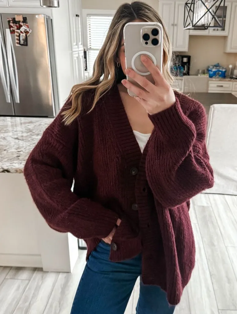 New with tags Old Navy cozy shaker-knit cardigan in a rich burgundy raisin color featuring a soft te... Show more