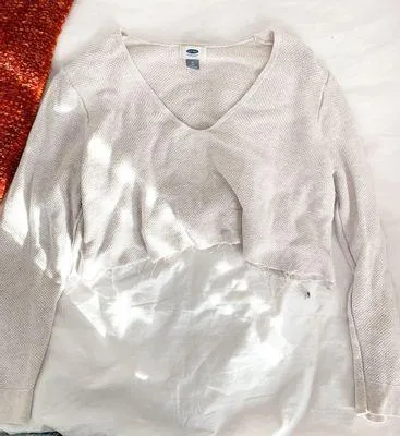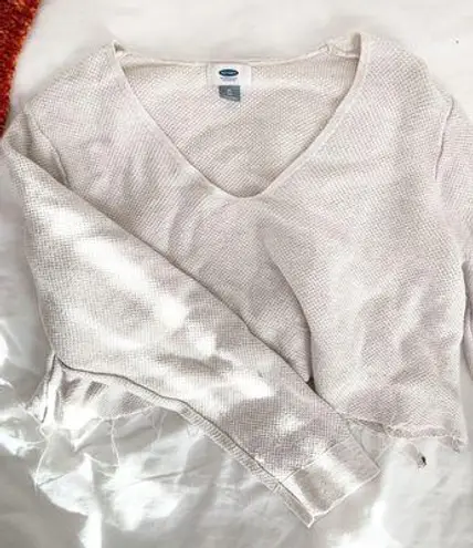 Originally XL, cropped to fit like a small! Frayed bottom, V-neck sweater!