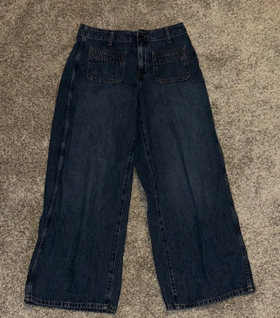 Chic wide-leg jeans with front pockets. Ideal for everyday style.