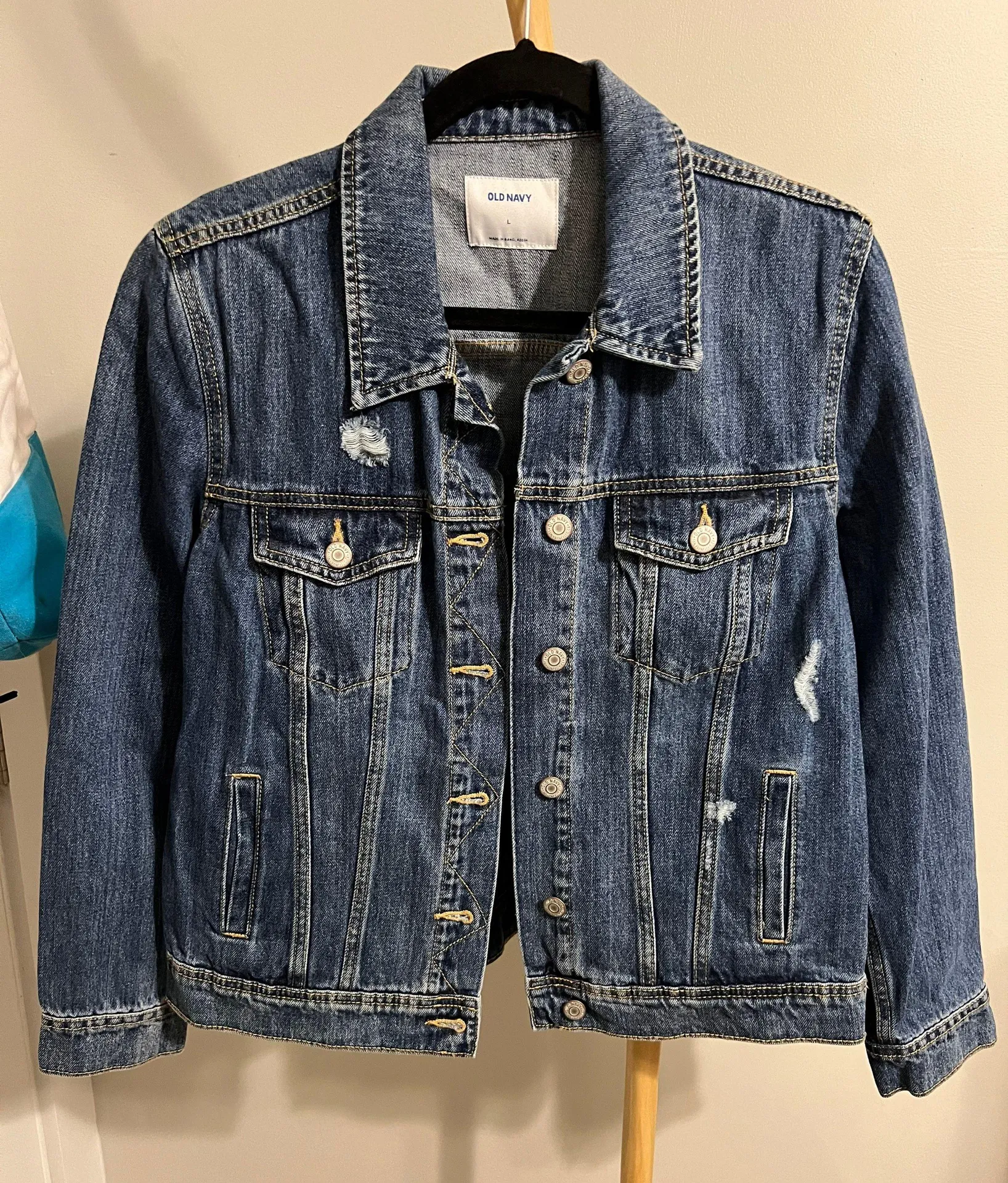Old Navy Distressed Denim Jacket Blue Size L - $10 (77% Off Retail) New With Tags - From Sam