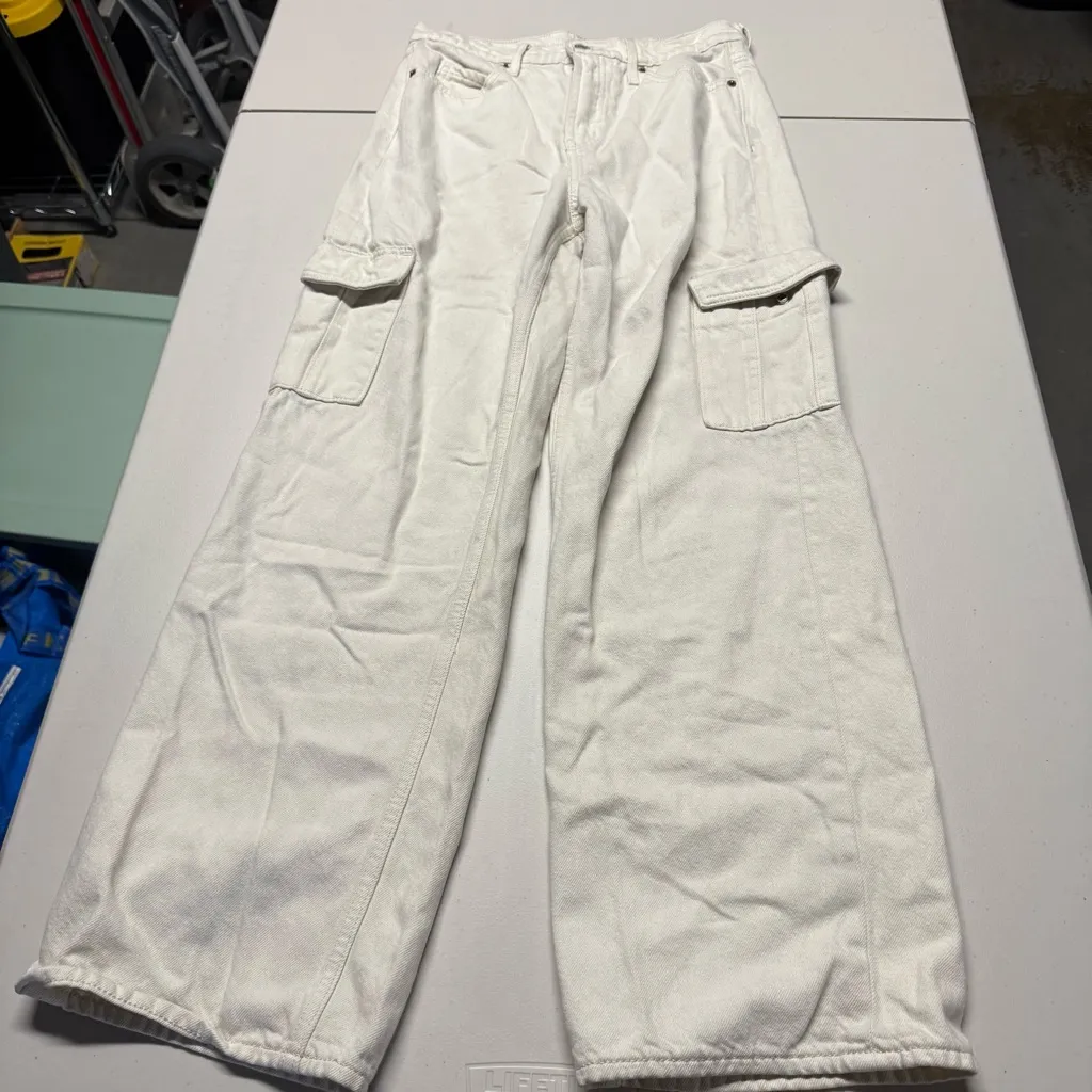 Stylish cream cargo pants. Features multiple pockets. Comfortable and versatile. In excellent condi... Show more
