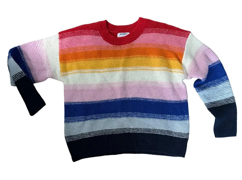 Brighten your wardrobe with this vibrant, comfortable rainbow striped sweater from Old Navy. Ideal f... Show more