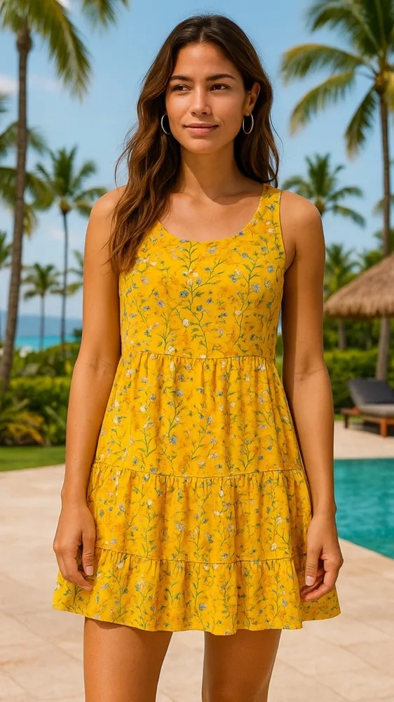 Bring sunshine to your winter wardrobe with this vacation ready Boho Babydoll floral swing dress by... Show more
