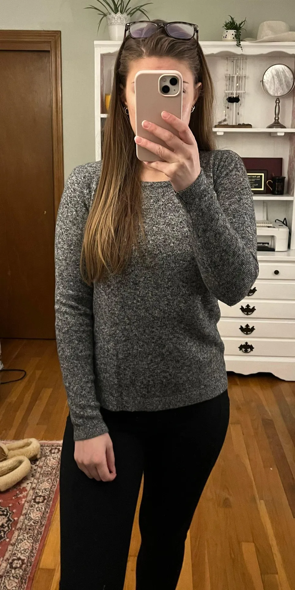 Super soft sweater from Old Navy. Crew neck, heathered grey. Size M