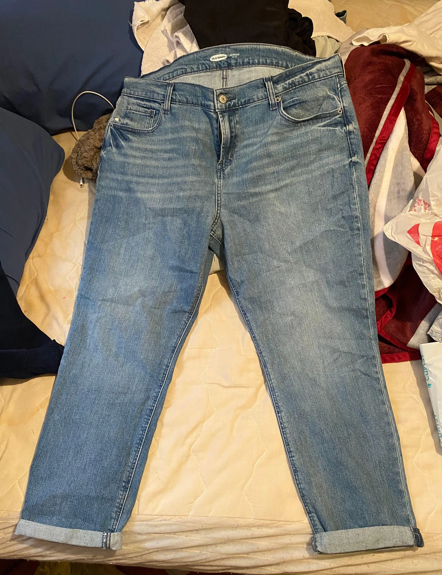 Only worn to try on. They are a bit big on me around the waist area.
