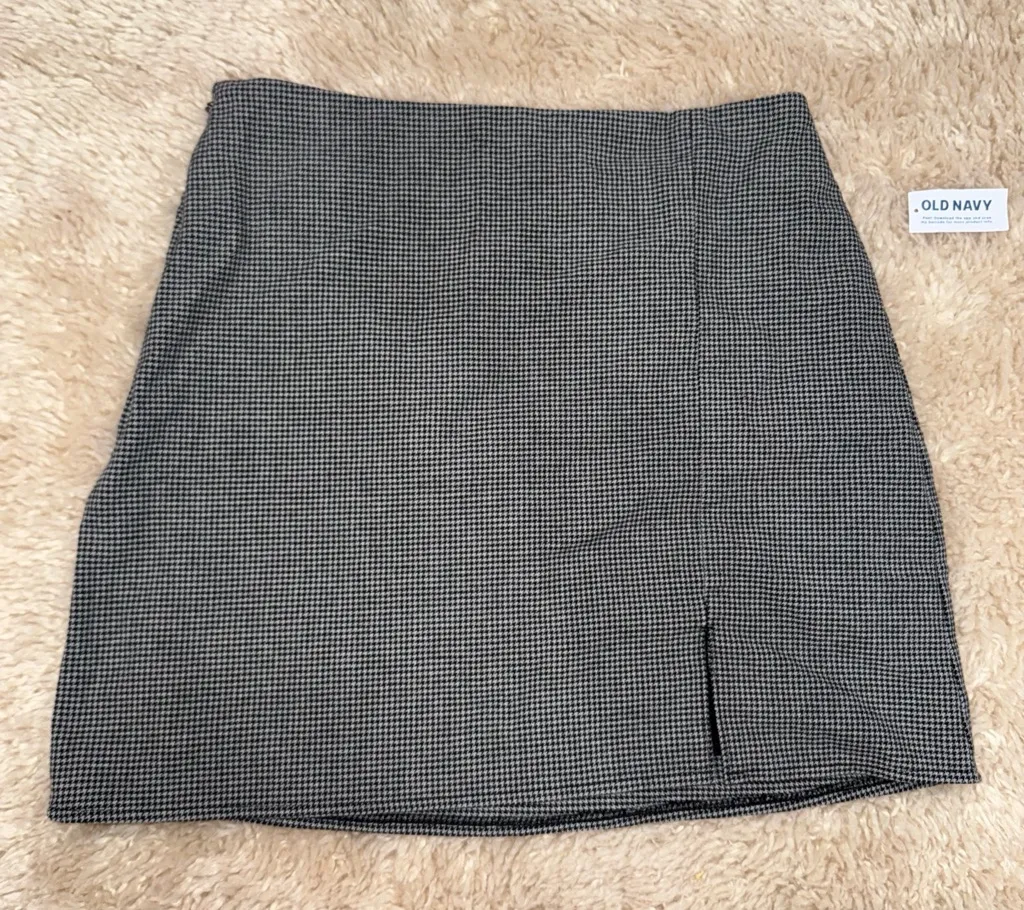 Old Navy Houndstooth Skirt Womens M Black And White Slit Mini Preppy