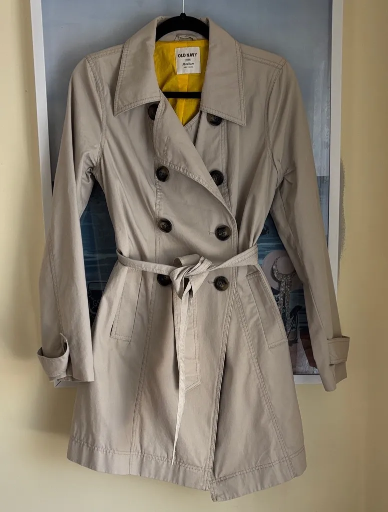 Chic, beautiful trench coat with a classic double-breasted design. Features a stylish belt and vibra... Show more