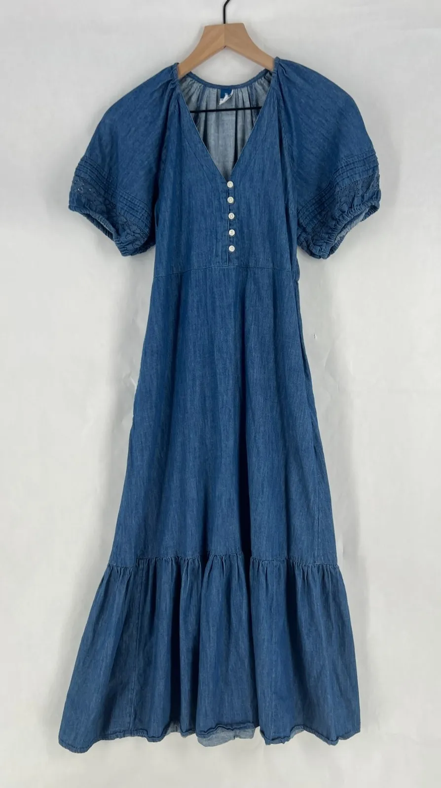 Description Old Navy Maxi Dress Womens XS Blue Denim Cotton Split Neck Short Puff Sleeve Product D... Show more