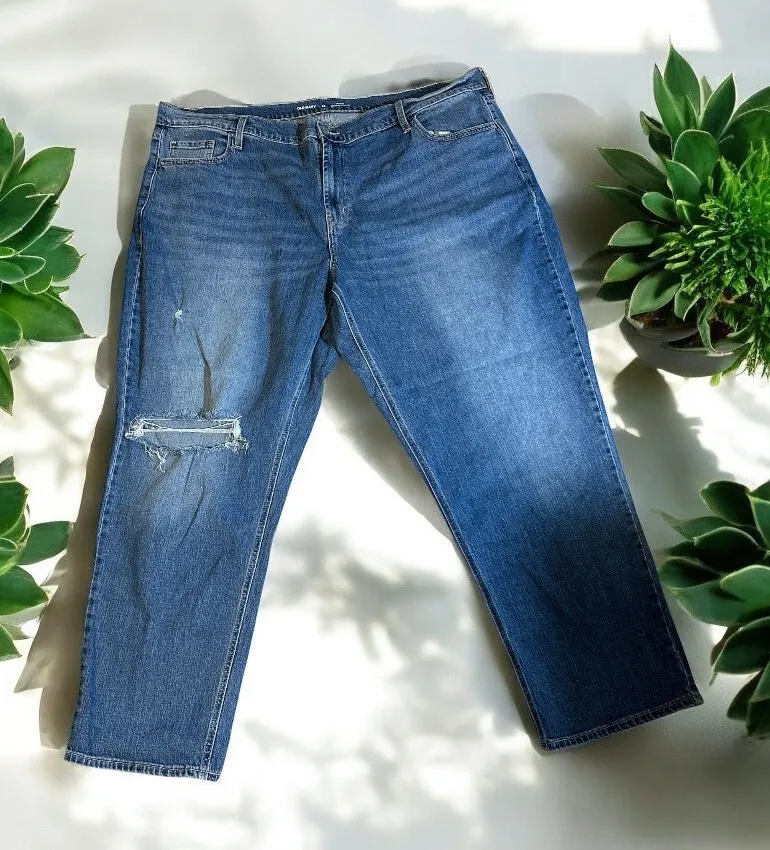 Old Navy Mid-Rise Wow Boyfriend Size 22 Medium Wash Denim Jeans Plus Distressed Classic denim jeans... Show more