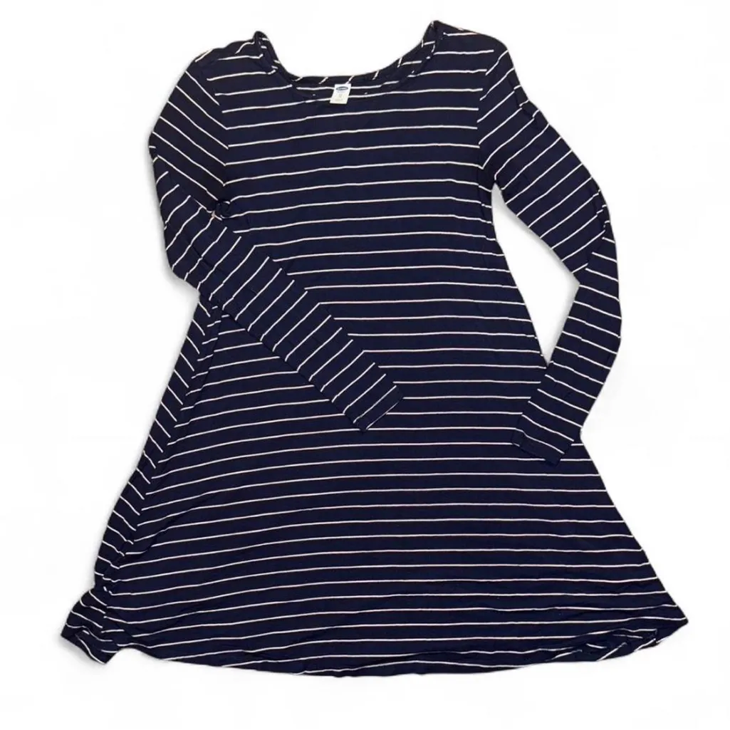 Classic long-sleeve swing dress from Old Navy in navy blue and white stripes. Relaxed, comfortable f... Show more