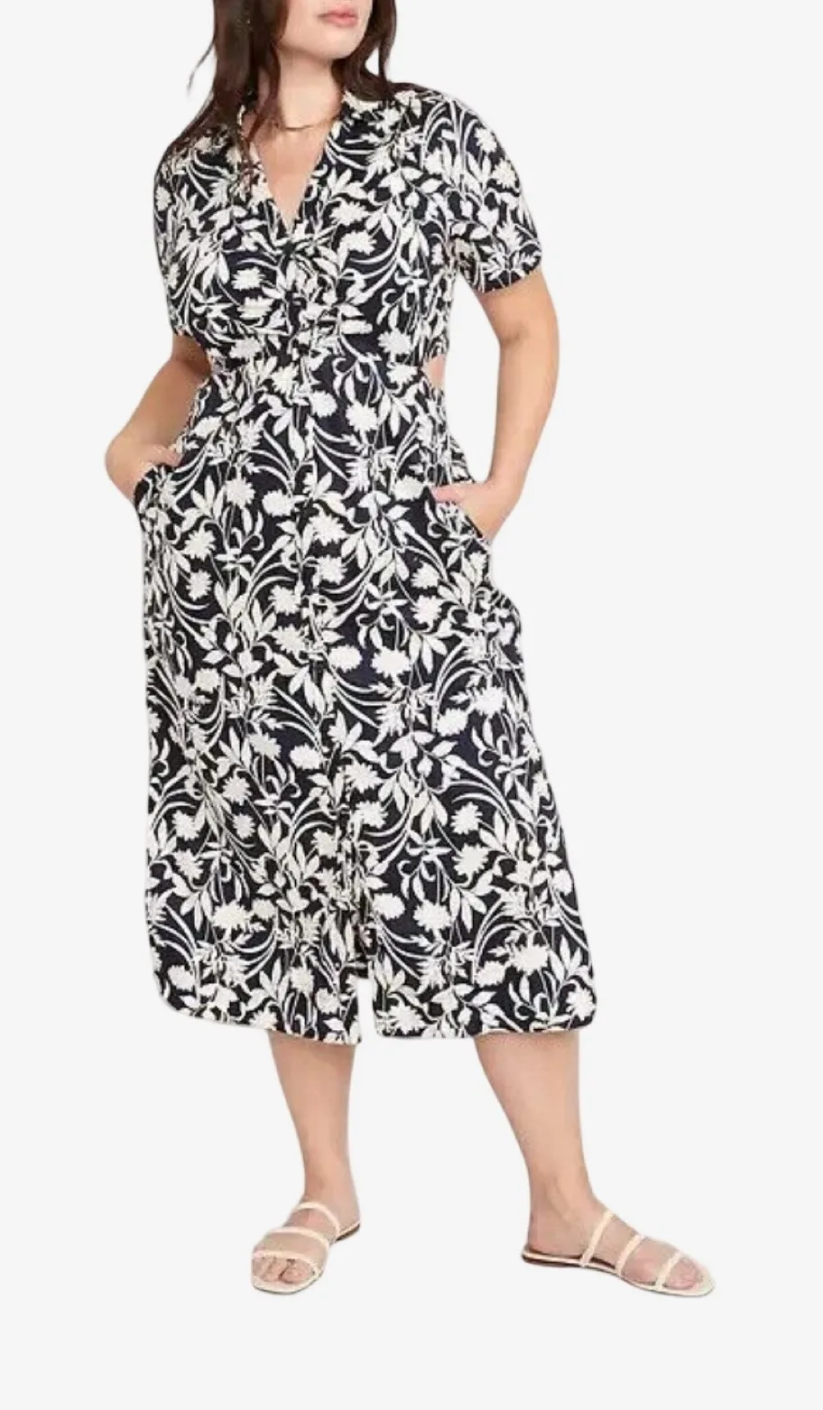 New with tag Old Navy floral print midi dress in navy and ivory. Crafted from breathable 100% cotton... Show more