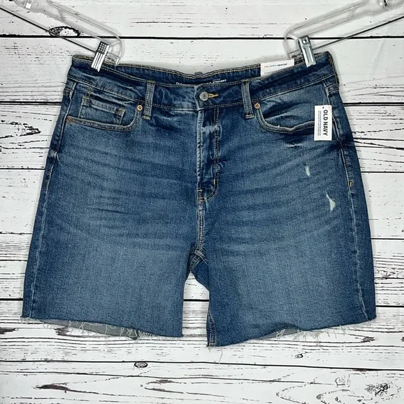 Old Navy Size 14 Blue Distressed Denim High-Rise O.G. Straight Jean Shorts. Belt Loops. Button with... Show more
