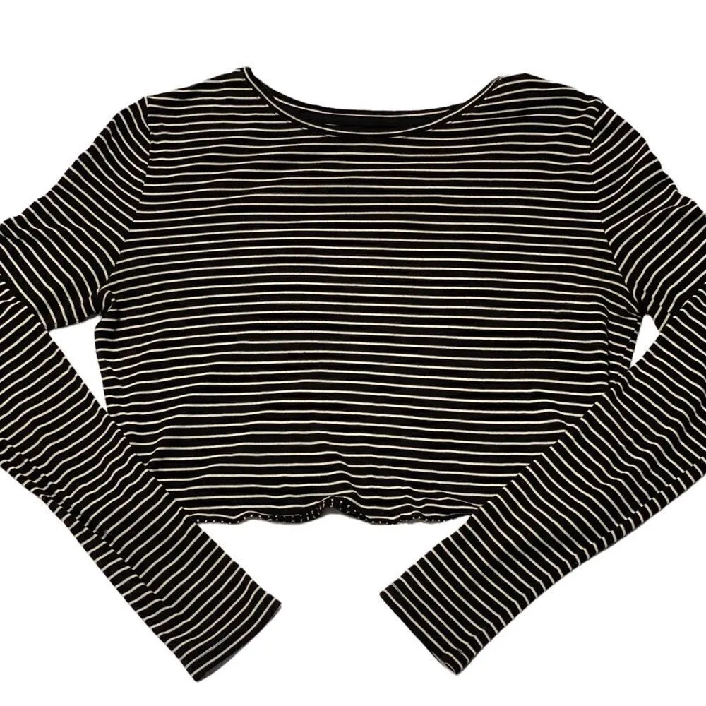 Old Navy Black & White Striped Longsleeve Cropped Baby Tee Black with Thin White Stripes U Neck Lin... Show more