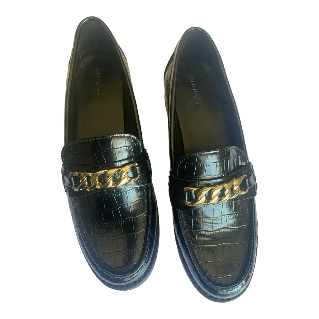 Old Navy Faux Leather Chunky Heel Loafers Size 10 strap and buckle detail across vamp cushioned foot... Show more