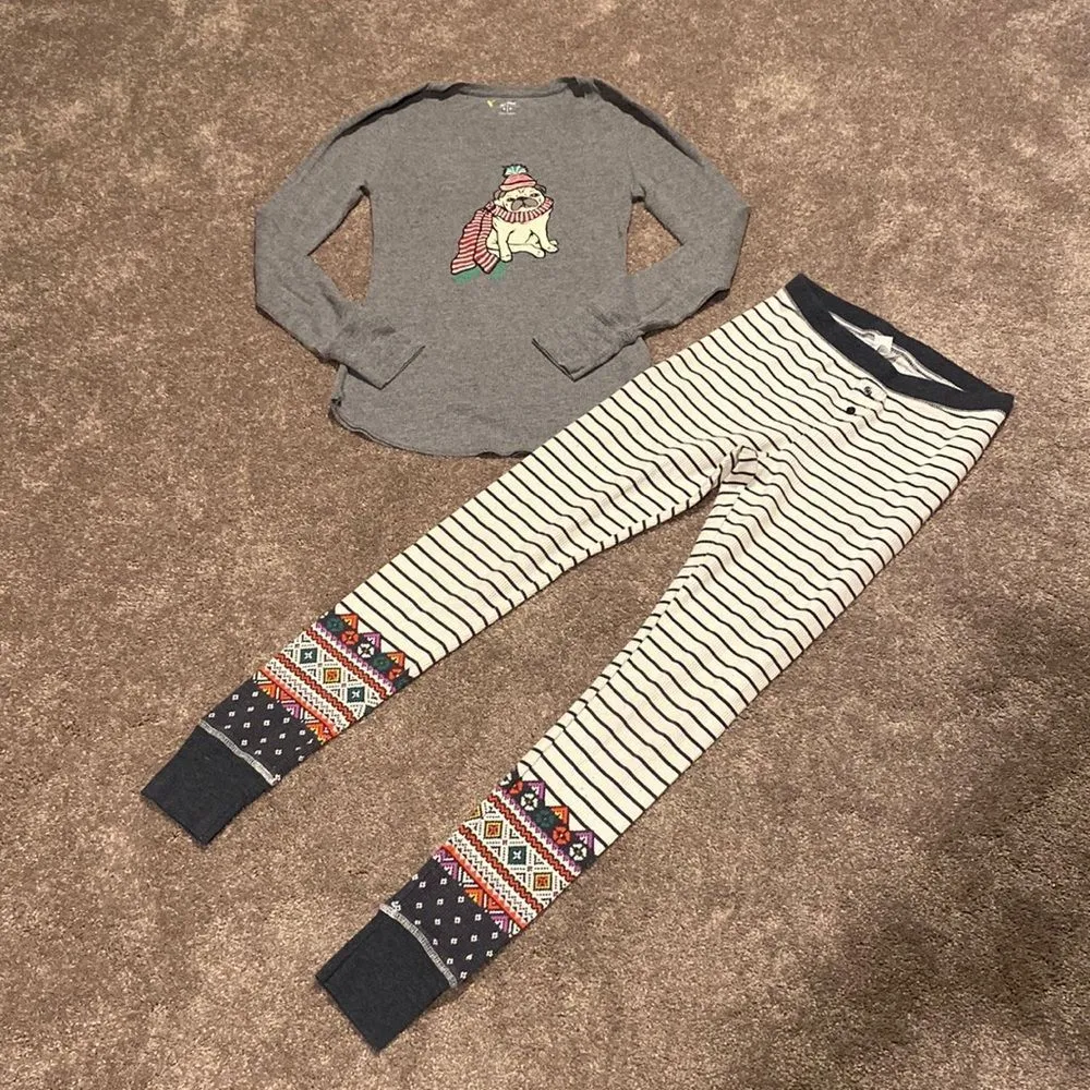 Old Navy Christmas Dog Print Long John Pajama Set SIZE S/XS Gray - $18 - From My