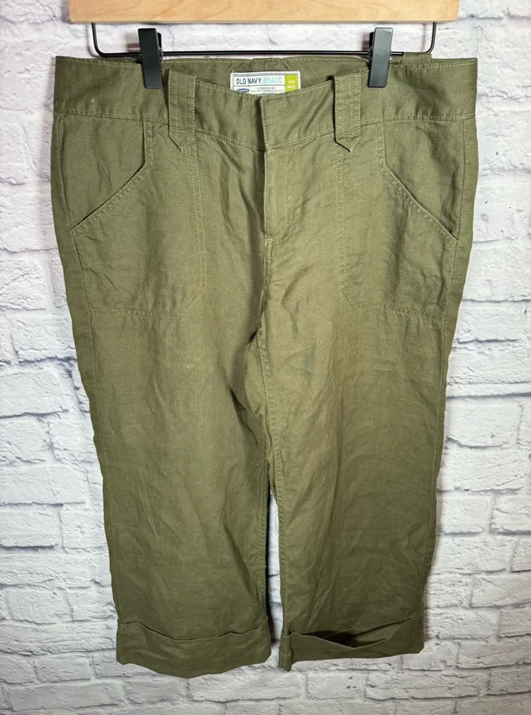 Old navy olive green low waist 100% linen cropped pants women’s size 6. Great condition. Measurement... Show more