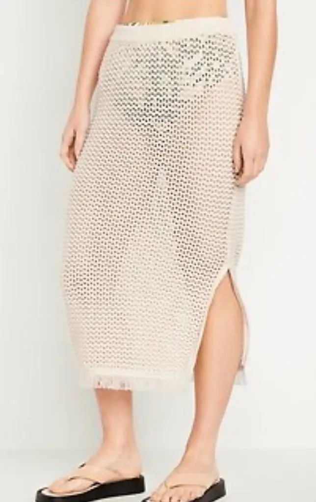 Old Navy Open-stitch Midi Skirt Cream Size Small | excellent pre owned condition. Unlined Elastic... Show more