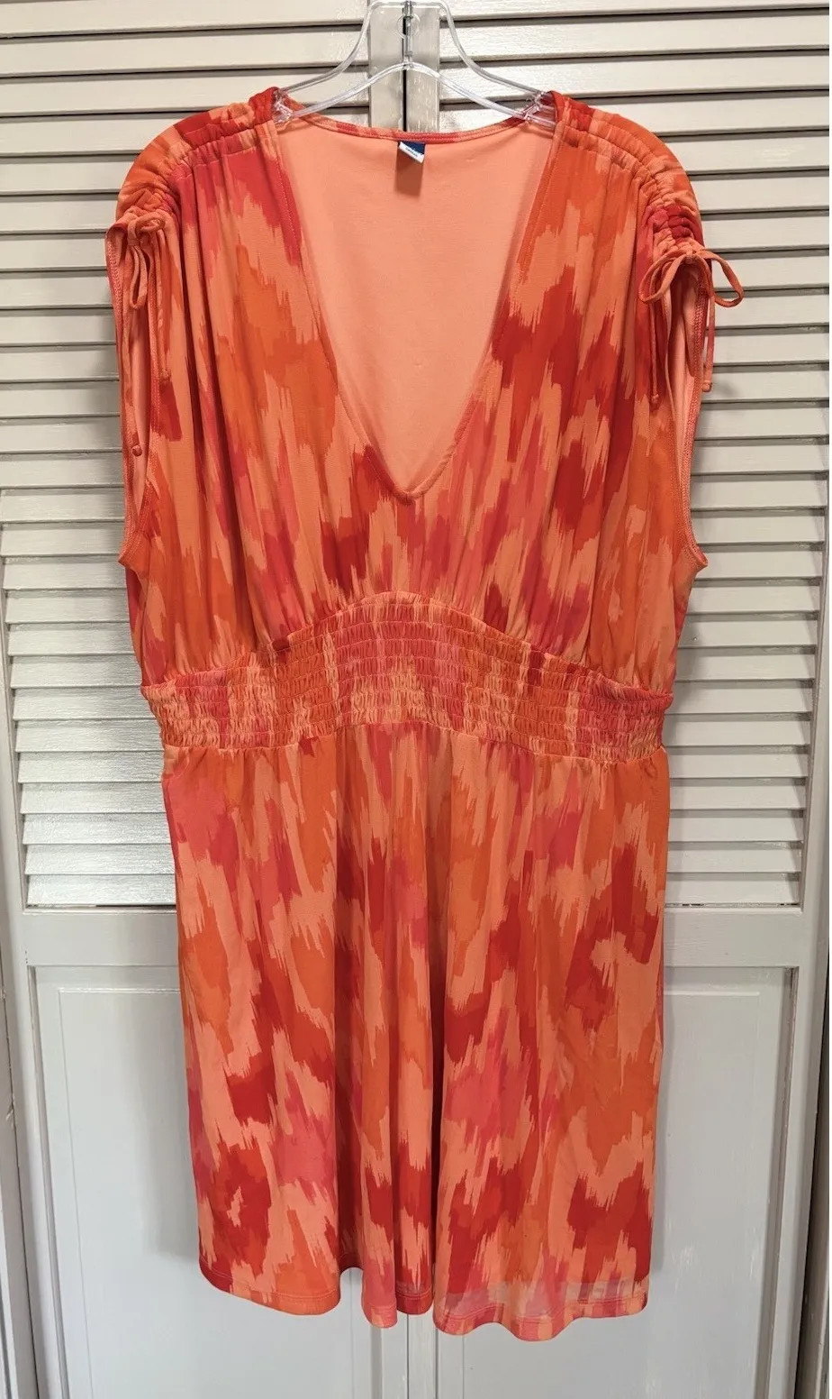 This stunning Old Navy dress boasts a vibrant orange abstract pattern that is perfect for any occasi... Show more