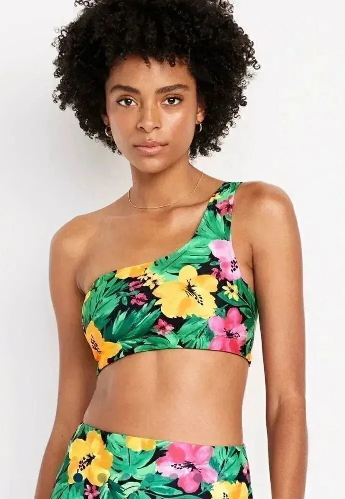 Old Navy Printed One-ShoulderTropical Bikini Swim Top & Bottoms Set SZ XS #2102 New with tag. Buil... Show more