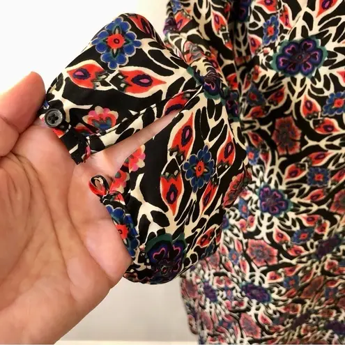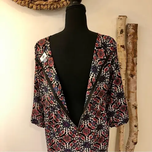 Love this print! Three quarter length sleeves with one button closure. Round neck. Exposed zipper... Show more