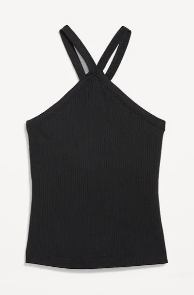 Old Navy tank with cross halter straps interior shelf bra built in Black ribbed material Size XL... Show more
