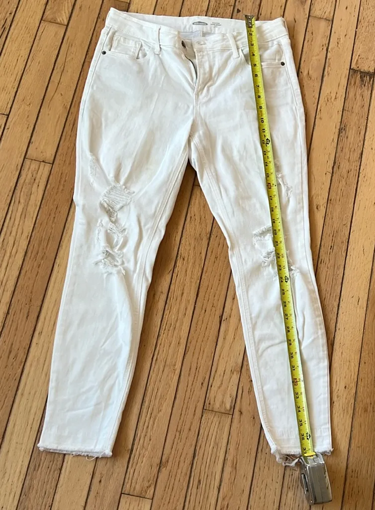 Old navy 🤍 ROCKSTAR supper skinny high riser size 8 with rips at knee and thigh. Super flattering �... Show more
