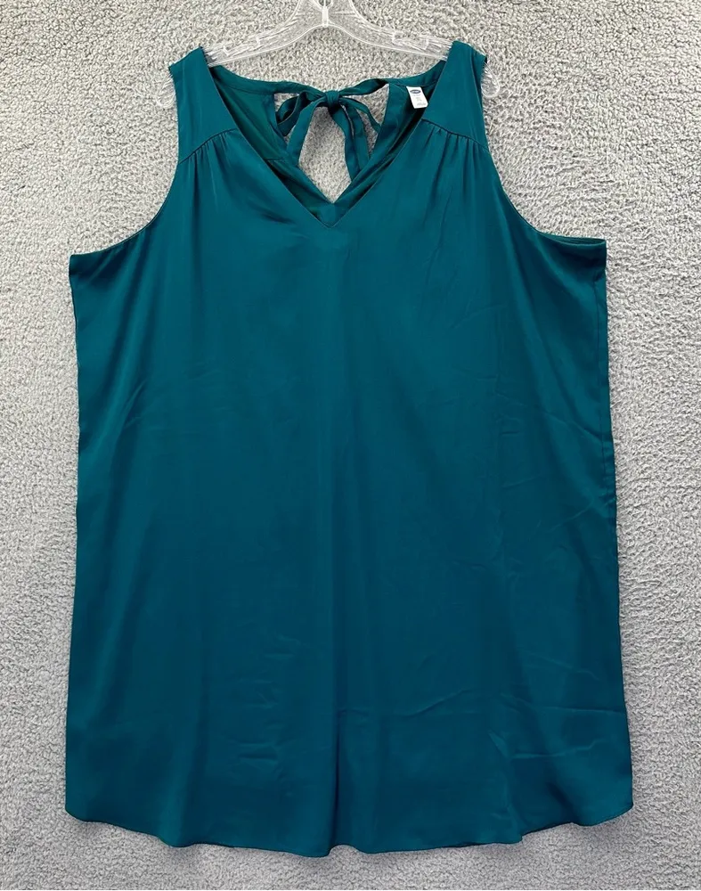 Old Navy Sleeveless V Neck Satin Shift Dress Dark Teal Knee Length Women's XXL Pullover Tie back V... Show more