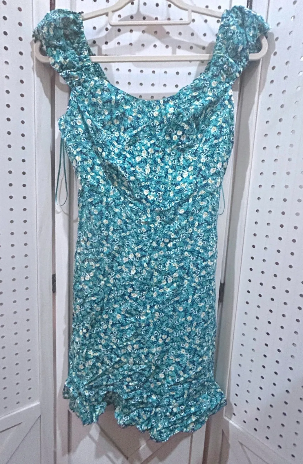 So cute!!! Old Navy floral print mini dress. Features a smocked bodice, off-the-shoulder puff sleev... Show more
