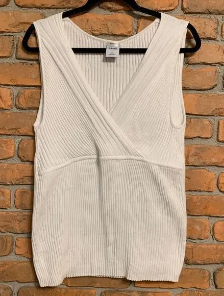 Elegant ribbed sleeveless top in pure white cotton featuring a sophisticated wrap-front design. The... Show more