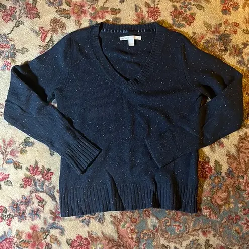 Cozy navy sweater with multicolored speckles, cute and unique! Wool blend. Gently worn no damage, so... Show more