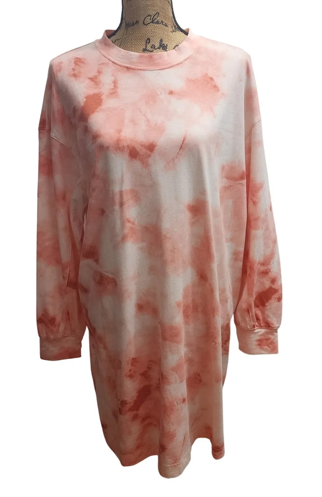Old Navy tie dye long sleeve tunic dress in coral and white. A relaxed fit long sleeve dress with a... Show more