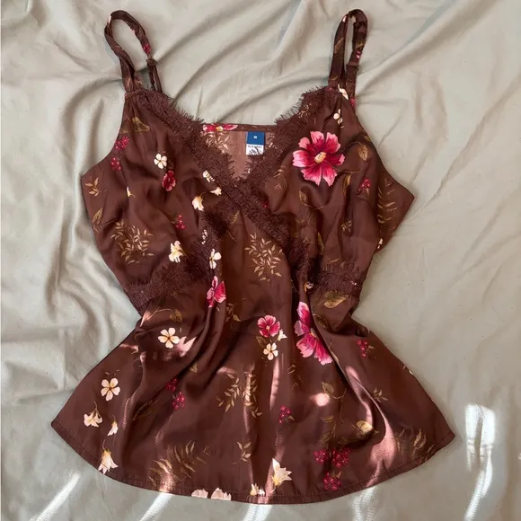 Brown and pink floral lace cami top NWOT size medium with adjustable straps old navy made in vietnam
