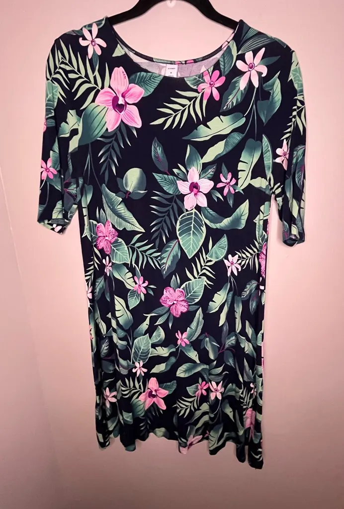 Fabulous preloved condition!! This lightweight Old Navy tropical floral knit swing dress is stylish... Show more