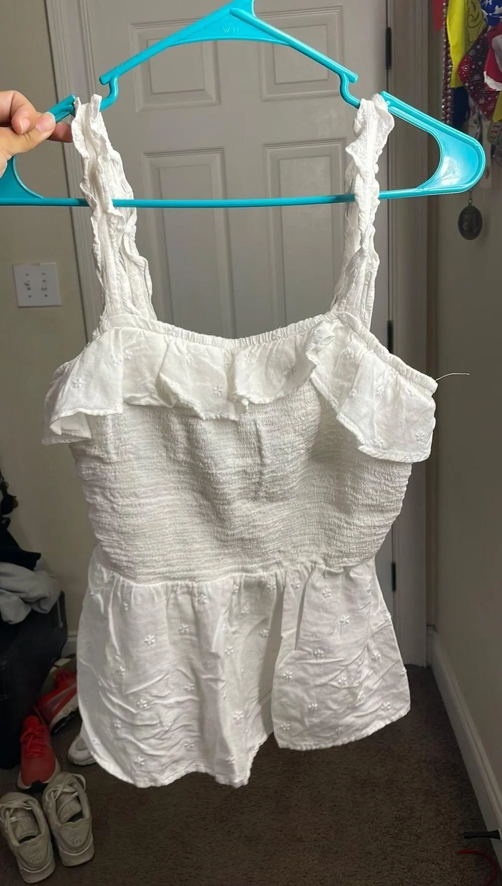 -new w/o tags -white ruffly top -great for beach!