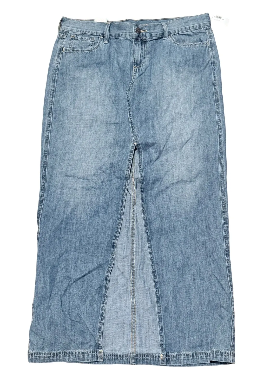 Classic fit denim maxi skirt in a medium wash. This skirt features a traditional five-pocket styling... Show more