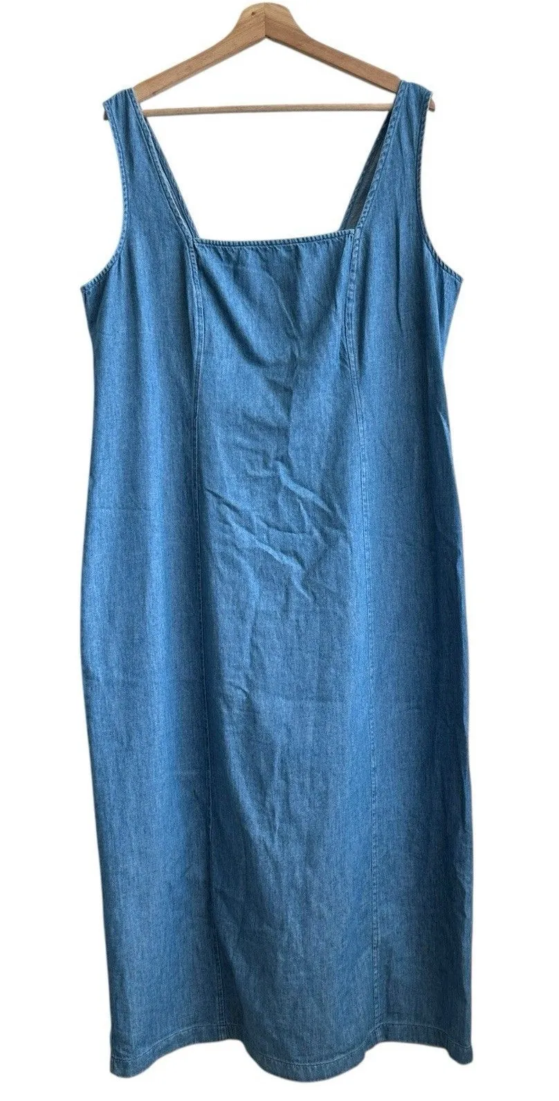 The Old Navy women's Fit & Flare Sleeveless Denim Midi Dress in size XL features a square neck and a... Show more