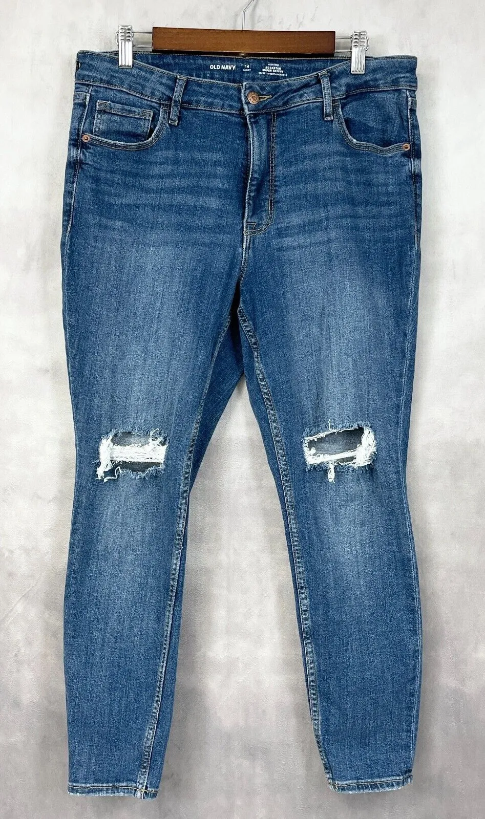 Old Navy Womens Jeans Size 12 Short High Rise Rockstar Super Skinny Distressed -Condition: good pre... Show more