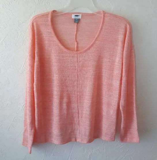 B11 Size Medium. Old Navy Peach colored Scoop Neck Long Sleeve Sheer Pullover Top Blouse. Bust mea... Show more