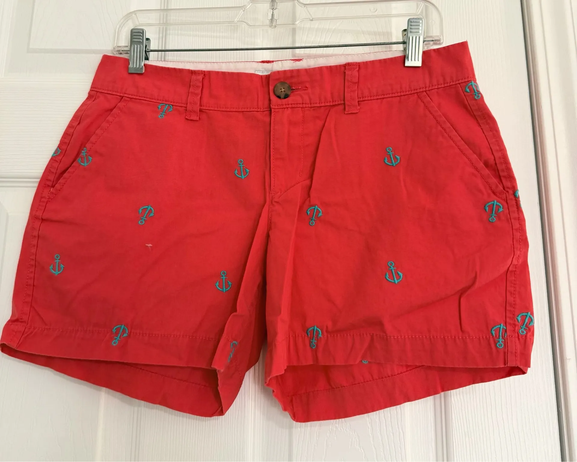 Vibrant red shorts with charming anchor details. Ideal for casual outings.