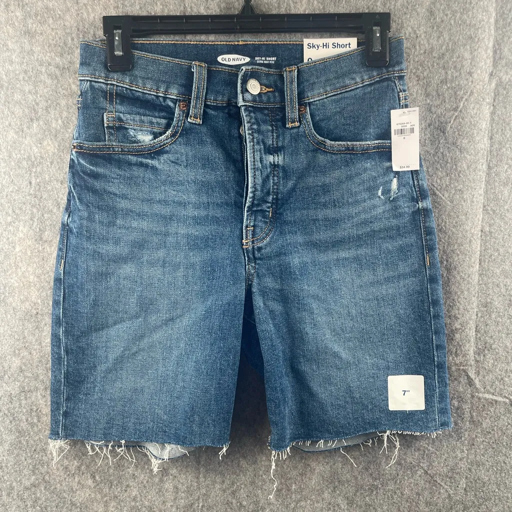 Old Navy Women’s Size 0 Extra High-Waisted Sky-Hi Button-Fly Ripped Jean Shorts. New with tags see p... Show more