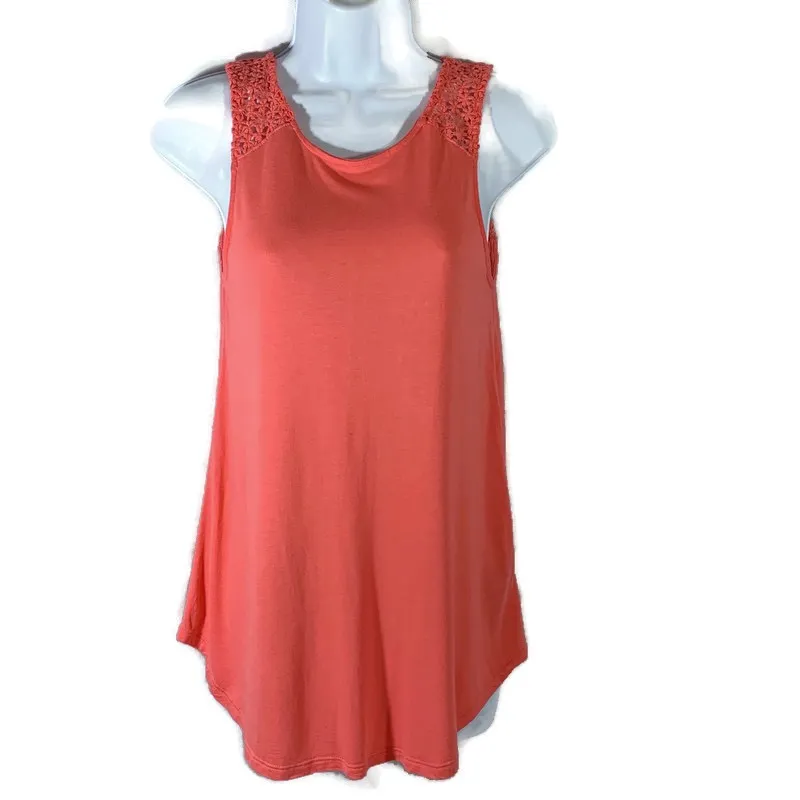 Womens Sleeveless Tank Top Crochet Floral Lace Back Size XS Coral Orange - $10 - From Gloria