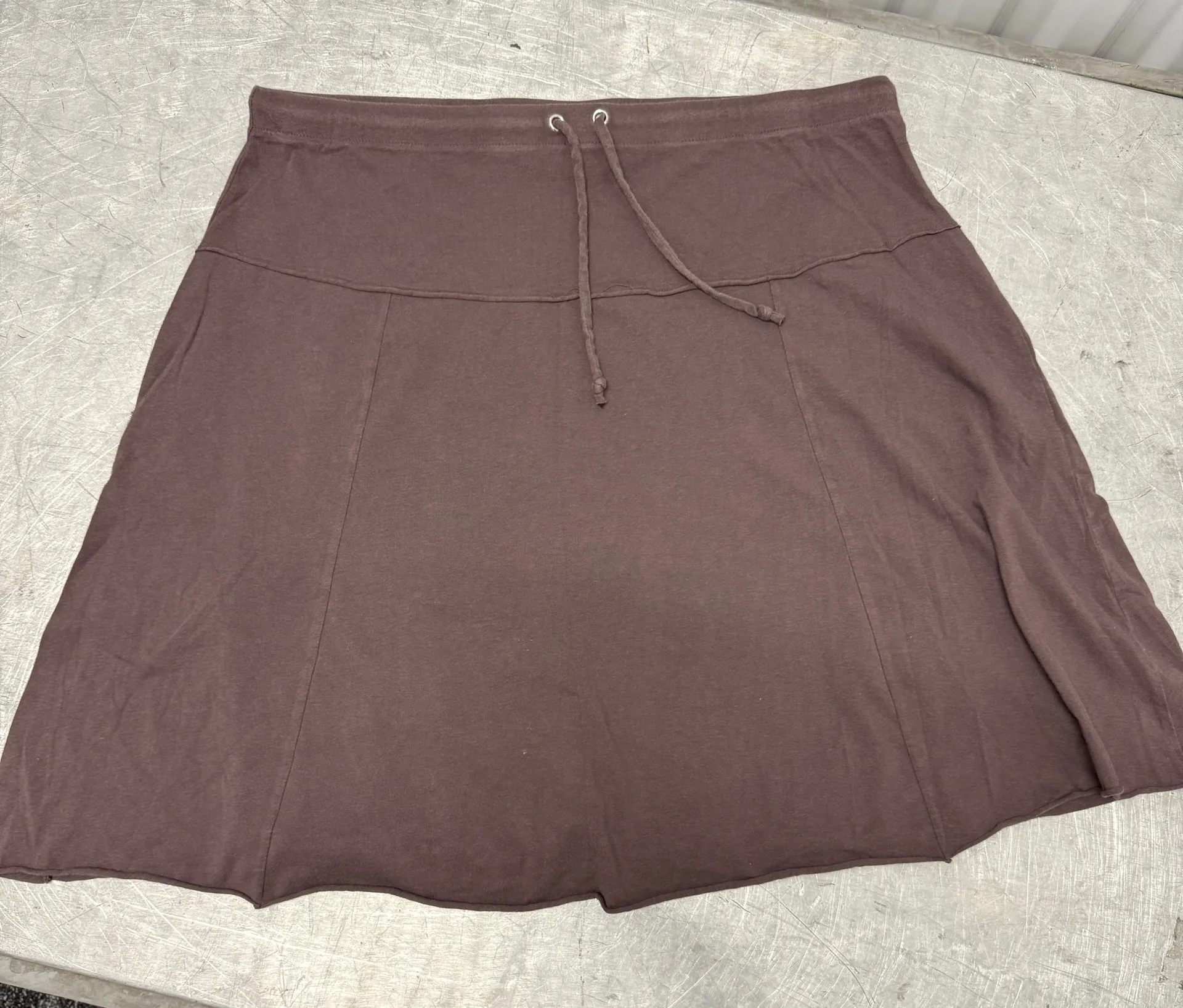 Women’s vintage light brown lightweight bohemian cotton short skirt with drawstring detail around th... Show more